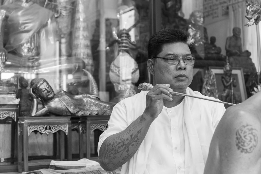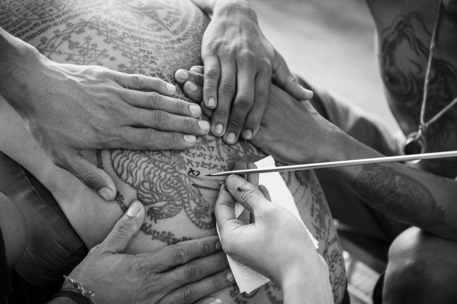 De nos jours, le tatouage est un art très à la mode, mais ses origines remontent à des milliers d’années pour des raisons culturelles ou religieuses à travers le monde. Pendant un an j’ai exploré le monde impressionnant et secret du Sak Yan, le tatouage traditionnel thaïlandais fait à la main par des moines et profanes appelés Ajarn (maître).