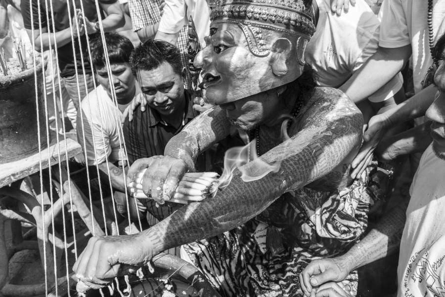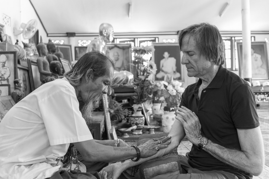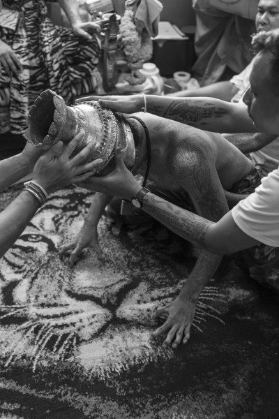 C’est un monde de magie et de mystère auquel les étrangers ont du mal à accéder et à comprendre. Avec patience et persévérance, Lie a profité de longues périodes au sein de la communauté Thaïlandaise relativement gardée, « Khru Sak » (maître tatoueur), vivant parmi eux, partageant des repas au sein de leurs familles et assistant à des cérémonies spéciales telles que le « Wai Khru » annuel, au sein duquel les disciples rendent hommage à leurs maîtres passés et présents.